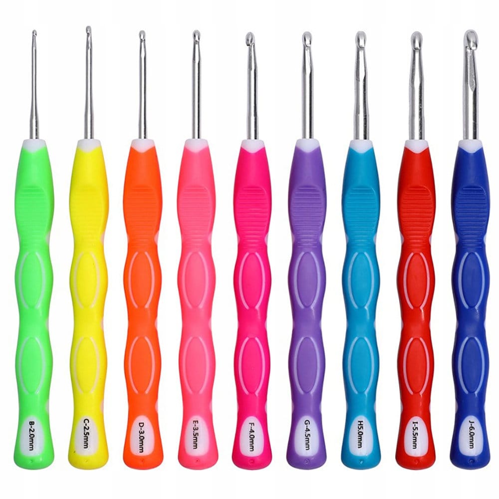 - 9 szydełek z ergonomiczną rączką od 2 do 6 milimetrów