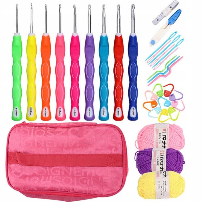 Kompletny zestaw do szydełkowania włóczka szydełka akcesoria 33 elementy