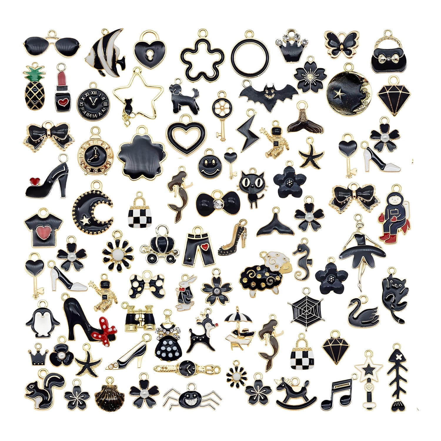 Zestaw 30 zawieszek: Zawiera 30 sztuk drobnych emaliowanych elementów idealnych do biżuterii i rękodzieła. Każda sztuka jest starannie wykonana i gotowa do użycia w różnych projektach.