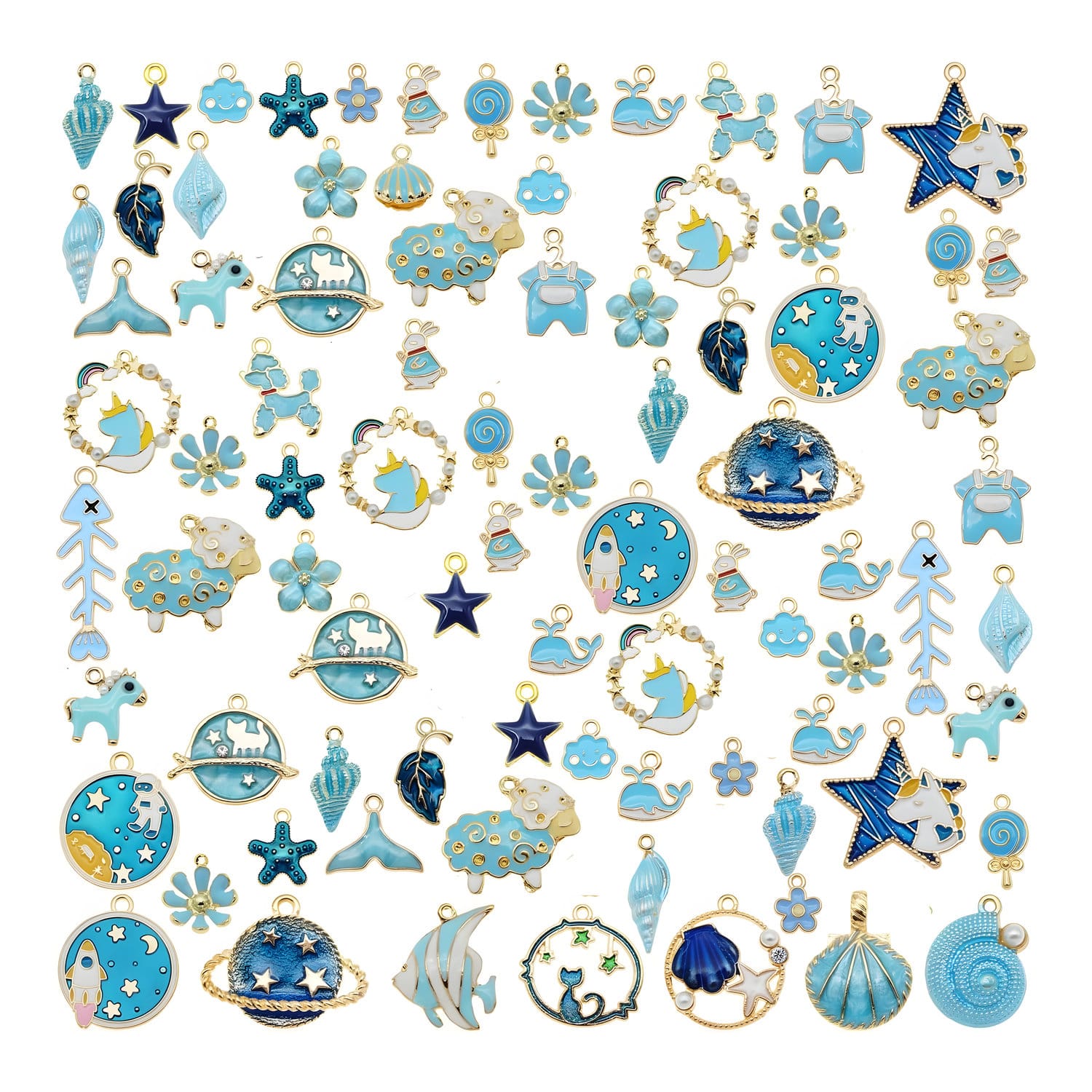 Zestaw niebieskich metalowych zawieszek do biżuterii 30 szt.