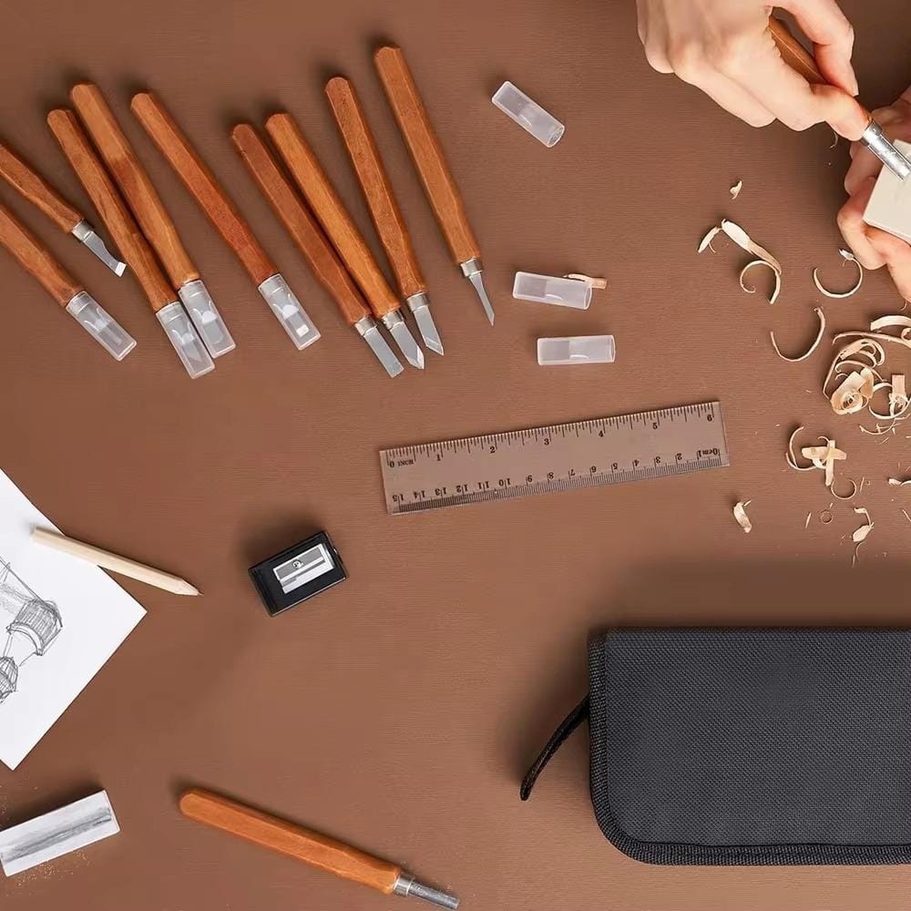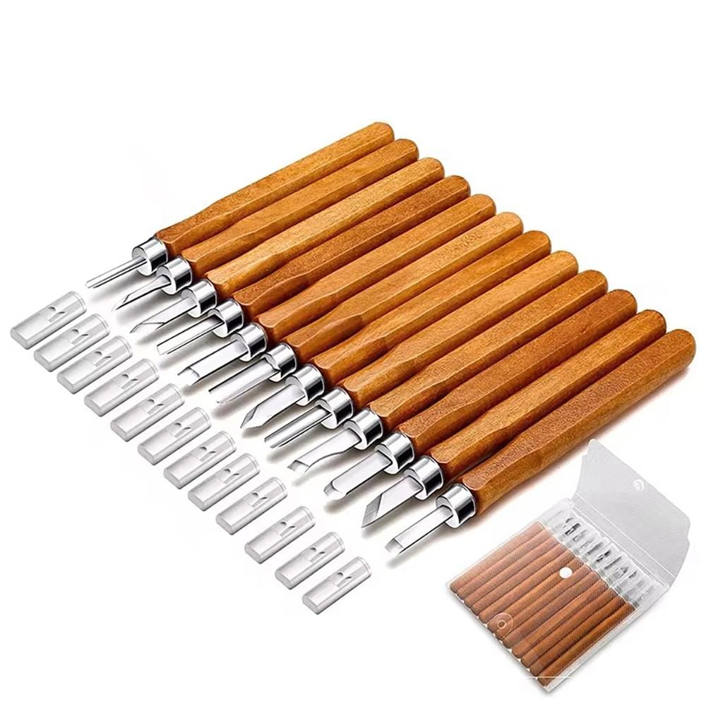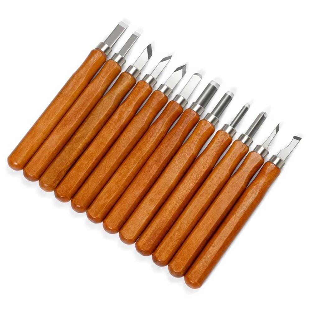 Zestaw do rzeźbienia w drewnie: 12 różnych dłut o ostrzach ze stali węglowej SK2, idealne do rzeźbienia w drewnie, kamieniu mydlanym, rękodzieła, rzeźb w warzywach czy glinie.