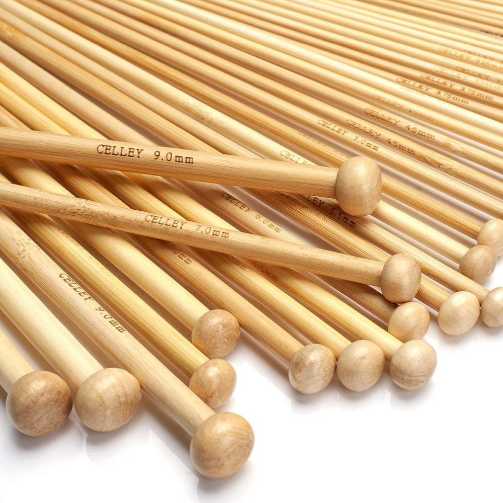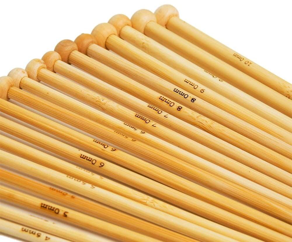 Zestaw 18 par bambusowych drutów do dziergania w rozmiarach od 2 do 10 mm. Materiał jest gładki i lekki, gwarantując komfort podczas pracy. Doskonale sprawdzą się jako prezent lub do codziennego użytku. Idealne dla miłośników robótek ręcznych.