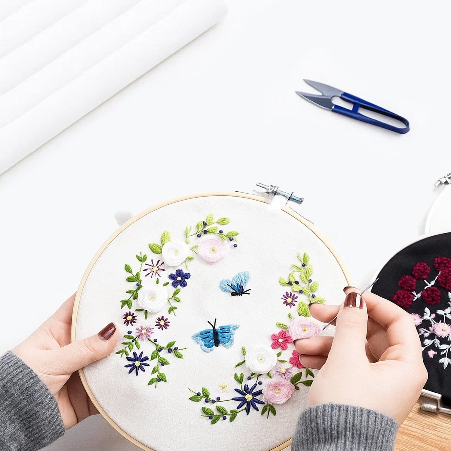 Zestaw kanwy do haftu: W komplecie znajduje się 6 białych kawałków tkaniny o wymiarach 50 × 50 cm, idealnych do różnorodnych projektów rękodzielniczych i dekoracyjnych.