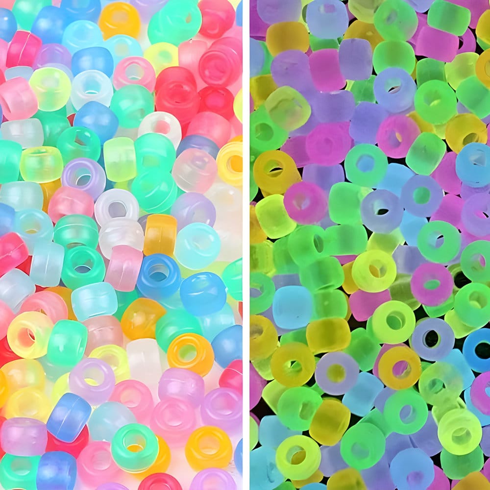 Zestaw 200 akrylowych koralików typu pony, które po naświetleniu emitują delikatne światło w ciemności. Koraliki mają gładką powierzchnię i są lekkie, dzięki czemu doskonale nadają się do tworzenia kolorowych bransoletek, naszyjników czy ozdób do włosów. Po wystawieniu na działanie światła słonecznego lub lampy, koraliki zaczynają świecić, dodając wyjątkowego efektu Twoim projektom DIY.