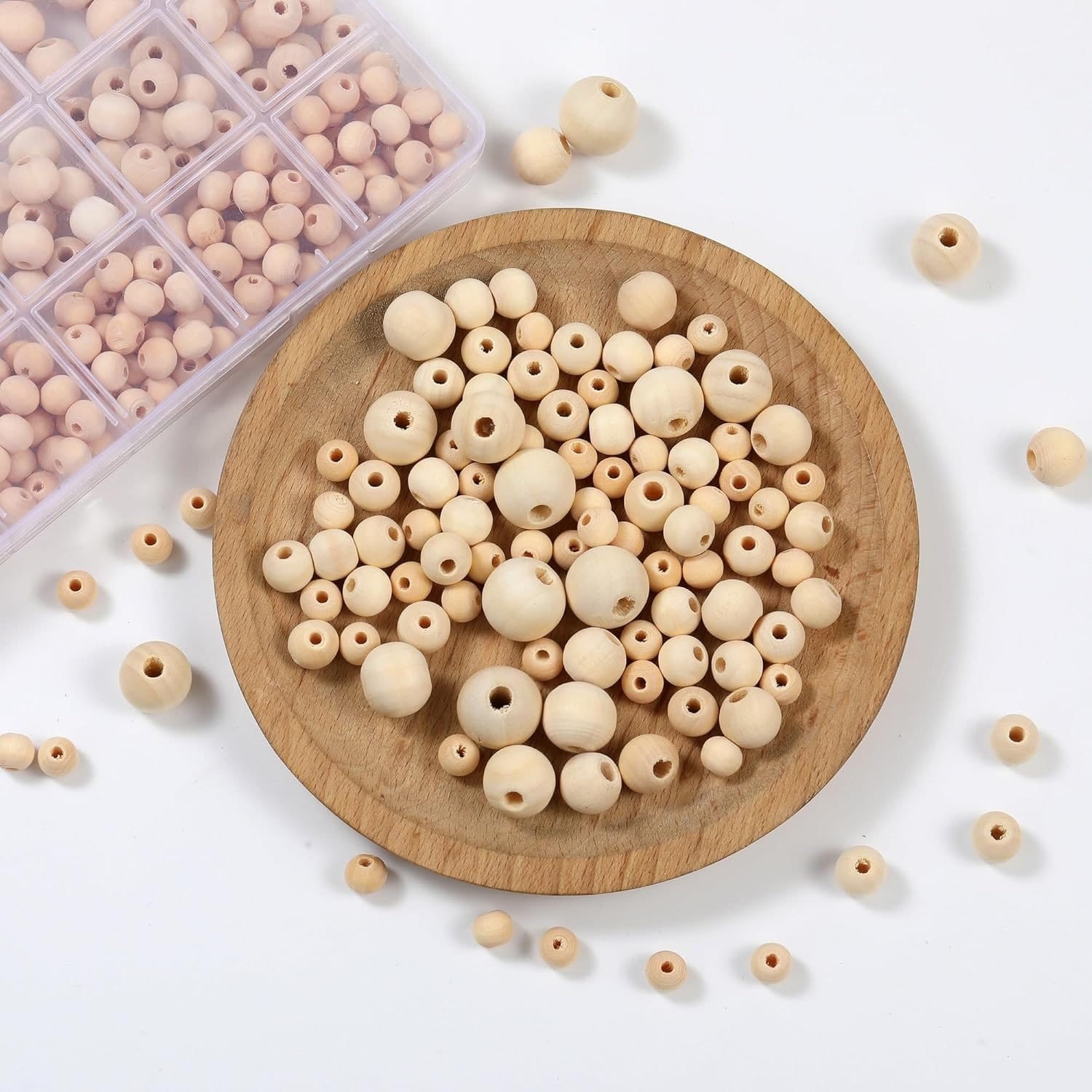 Zestaw 280 sztuk: komplet zawiera pięć różnych rozmiarów koralików drewnianych, co daje szerokie możliwości w projektach DIY i dekoracyjnych. Dzięki dużej ilości łatwo przygotujesz większe ozdoby czy zestawy biżuterii.