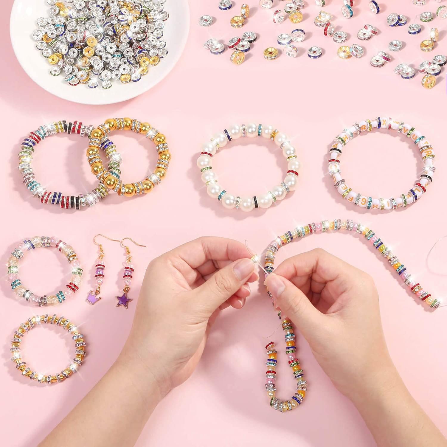 Efektowny blask cyrkonii: Każdy koralik zdobiony jest drobnymi kryształkami, które pięknie połyskują w świetle, dodając elegancji każdej bransoletce czy naszyjnikowi. Idealne do akcentowania głównych koralików w biżuterii.