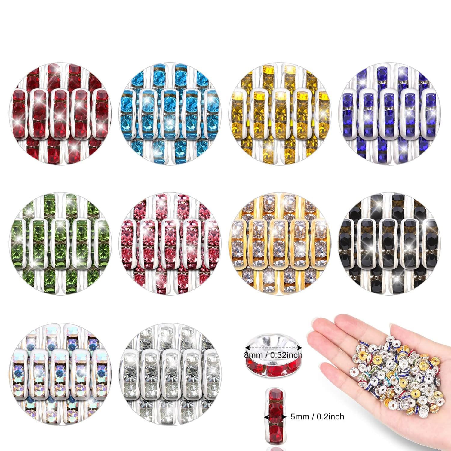Zestaw 200 sztuk okrągłych koralików przekładek typu rondelle to idealny wybór dla osób tworzących biżuterię. Każdy koralik ozdobiony jest drobnymi cyrkoniami, które pięknie odbijają światło. Różnorodność kolorów pozwala tworzyć oryginalne i efektowne projekty biżuteryjne, dopasowane do indywidualnego stylu.