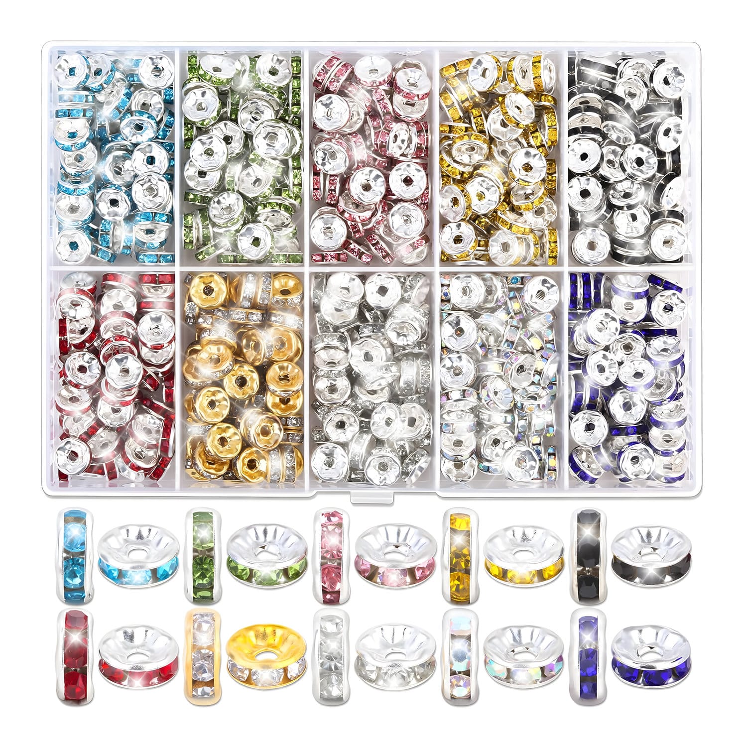 Zestaw koralików dystansowych rondelle z kryształkami 200 szt.