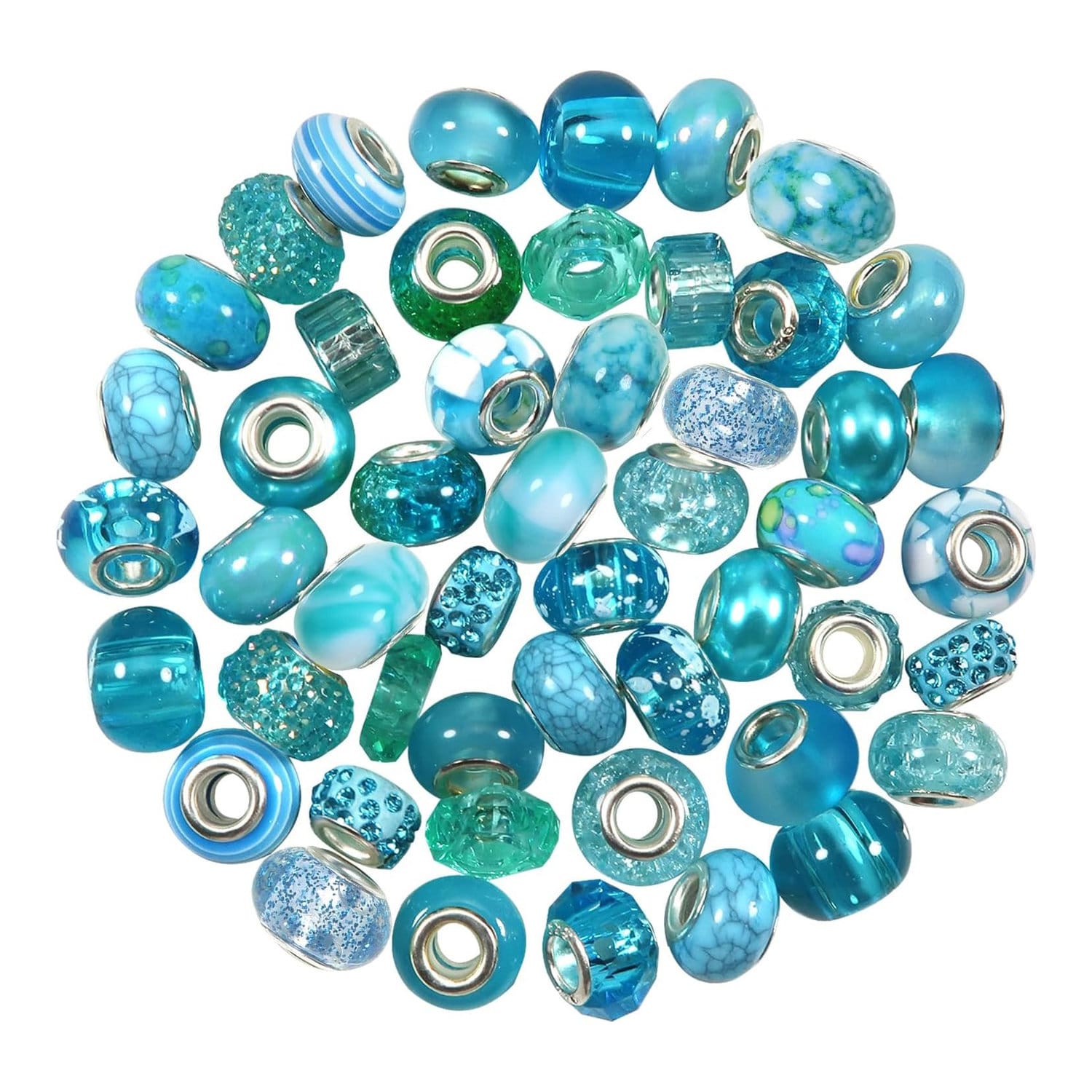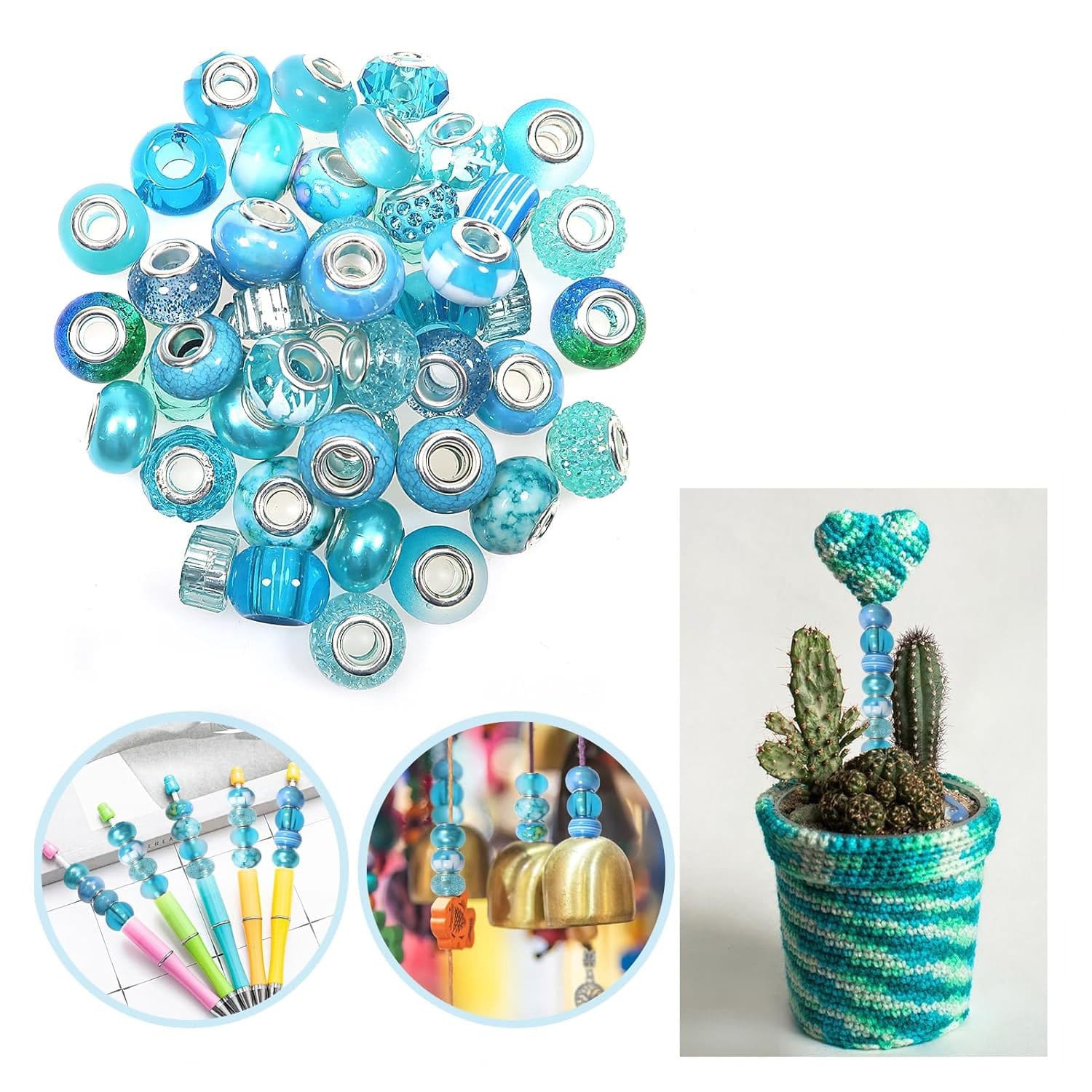 Zestaw 50 koralików z dużym otworem: Kompletny zestaw ozdobnych koralików do biżuterii i rękodzieła. Różne wzory pozwalają tworzyć oryginalne i efektowne projekty.