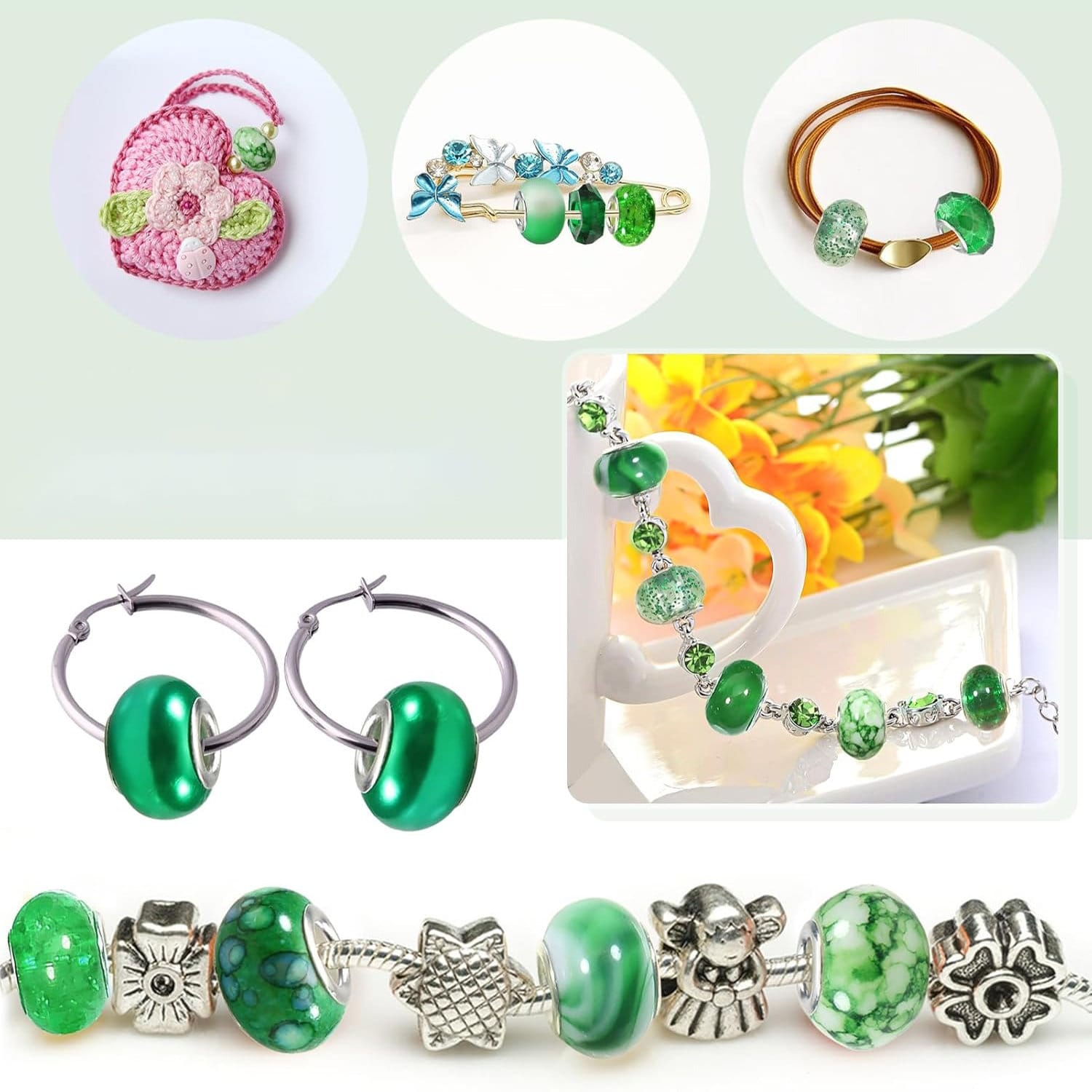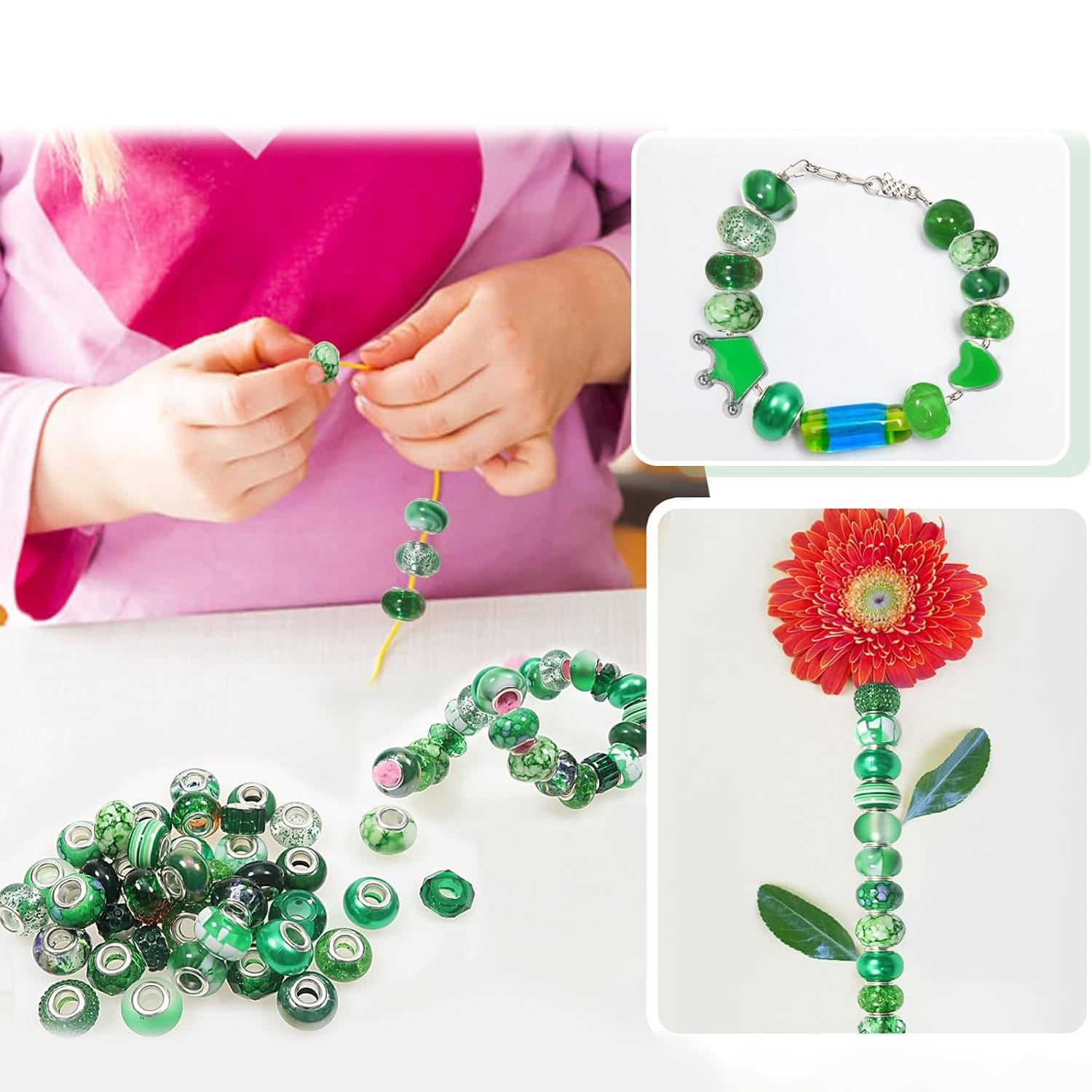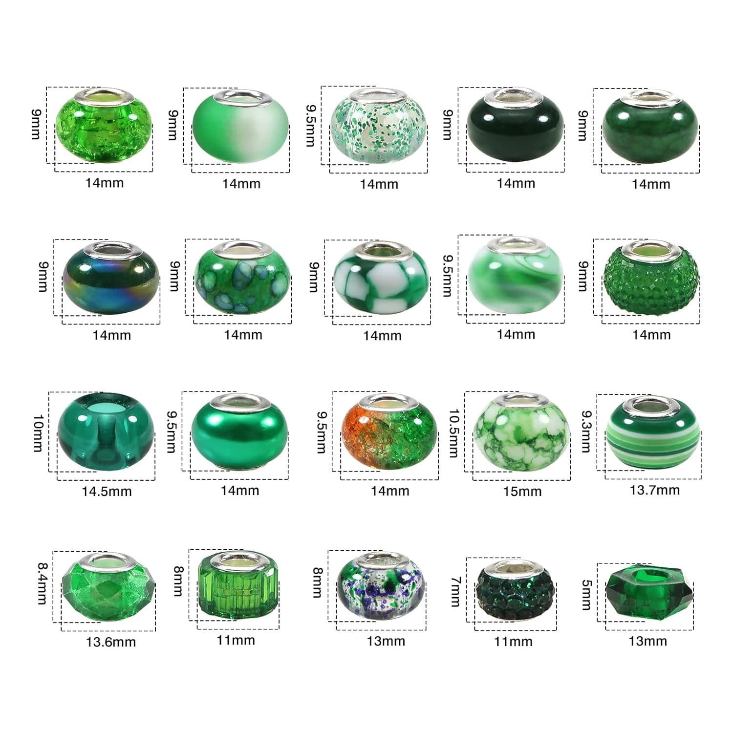 Zestaw 50 koralików z dużym otworem: Kompletny zestaw ozdobnych koralików do biżuterii i rękodzieła. Różne wzory pozwalają tworzyć oryginalne i efektowne projekty.