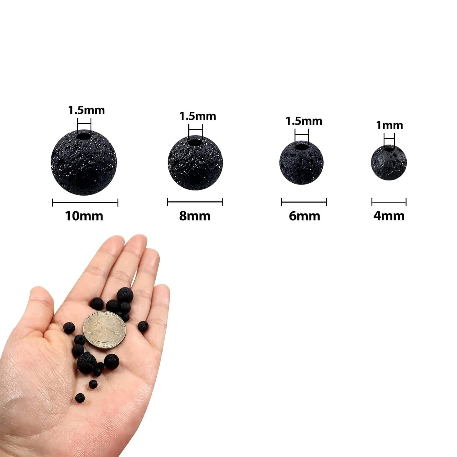 Różne rozmiary w jednym zestawie: 580 sztuk w czterech popularnych średnicach (4 mm, 6 mm, 8 mm, 10 mm), co umożliwia tworzenie zróżnicowanych projektów biżuterii i dekoracji.