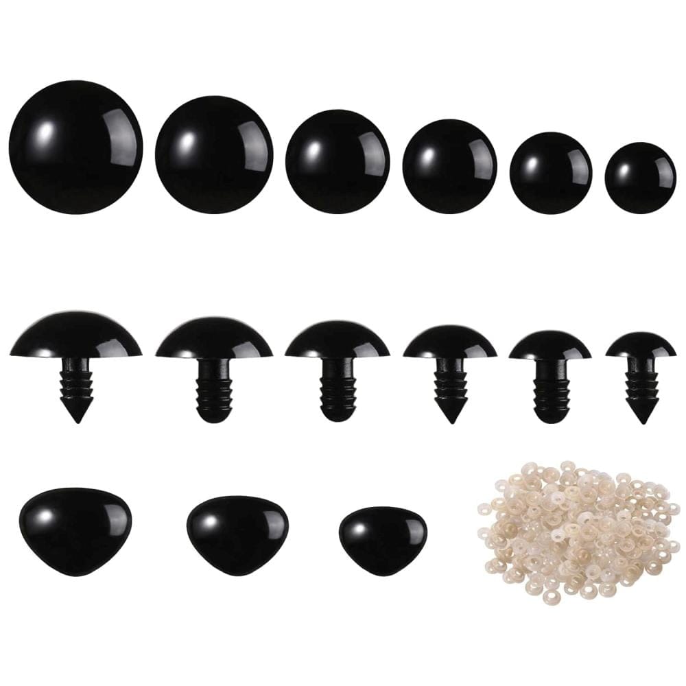 - Zestaw zawiera bezpieczne oczy w rozmiarach: 30mm, 24mm, 20mm, 18mm, 16mm, 12mm (po 20 sztuk każdego rozmiaru)