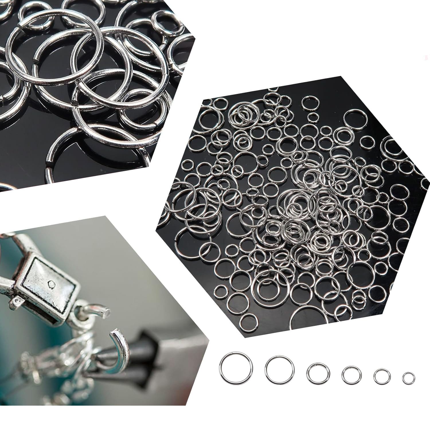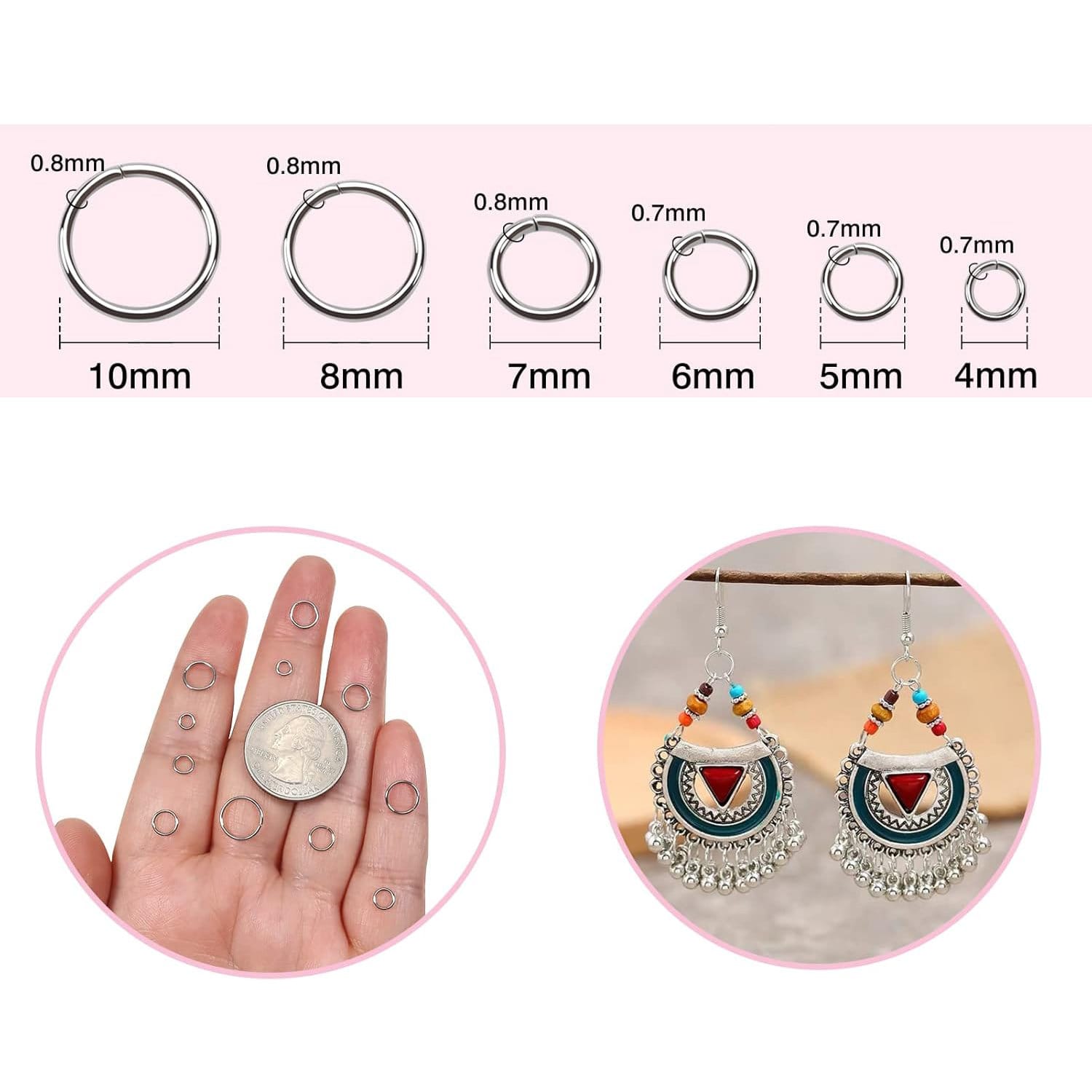Zestaw 1000 kółek łączeniowych: Zawiera 6 rozmiarów (4–10 mm), co pozwala łatwo dobrać odpowiedni pierścień do każdego projektu biżuteryjnego lub rękodzielniczego.