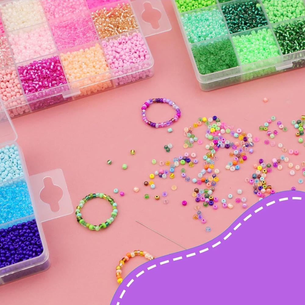 - Kompletny zestaw 7380 koralików: Zestaw zawiera aż 7380 szklanych koralików o średnicy 3 mm – idealnych do tworzenia bransoletek, naszyjników i innych ozdób. Bogactwo kolorów i wykończeń daje niemal nieograniczone możliwości projektowe.