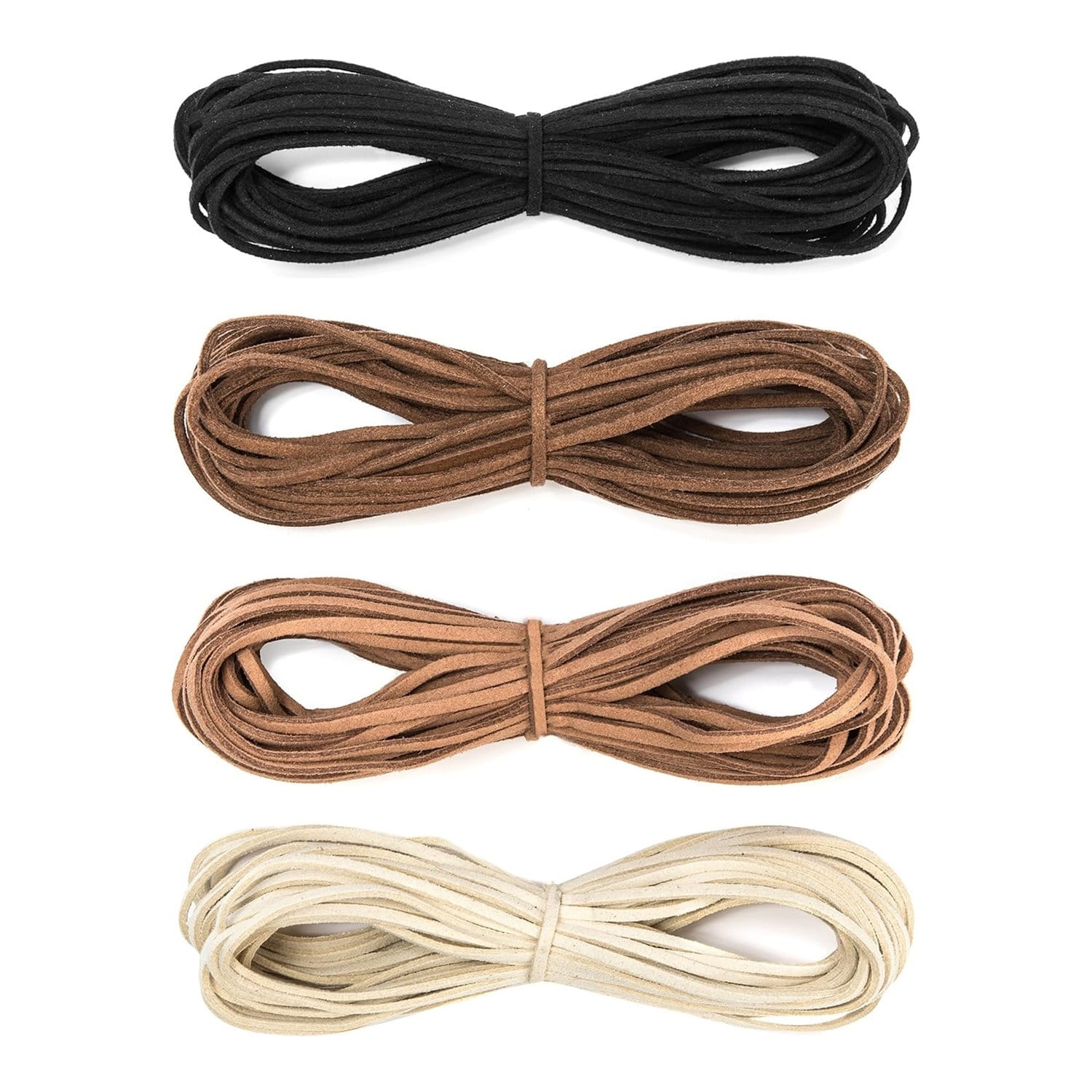 Zestaw sznurków z ekoskóry idealny do biżuterii i rękodzieła. W komplecie znajdują się 4 kolory miękkiego, trwałego zamszu syntetycznego. Materiał jest przyjemny w dotyku, elastyczny i odporny na zużycie, dzięki czemu doskonale sprawdza się w różnego rodzaju projektach DIY – od naszyjników po dekoracje i ozdoby.