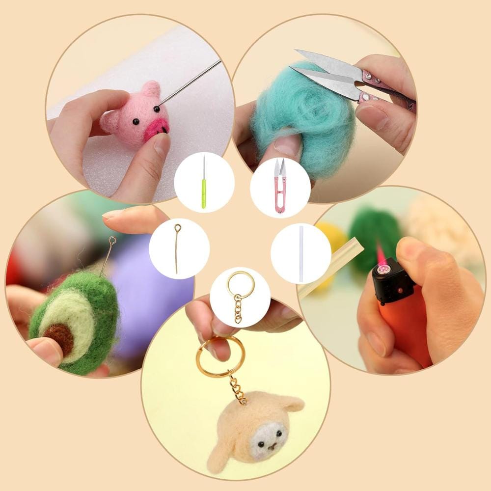 - Kompletny Zestaw Do Filcowania: Zawiera igły do filcowania, kleje, formy, szczypce, nożyczki, ochraniacze na palce, matę piankową i i wszystko inne, co niezbędne do filcowania.