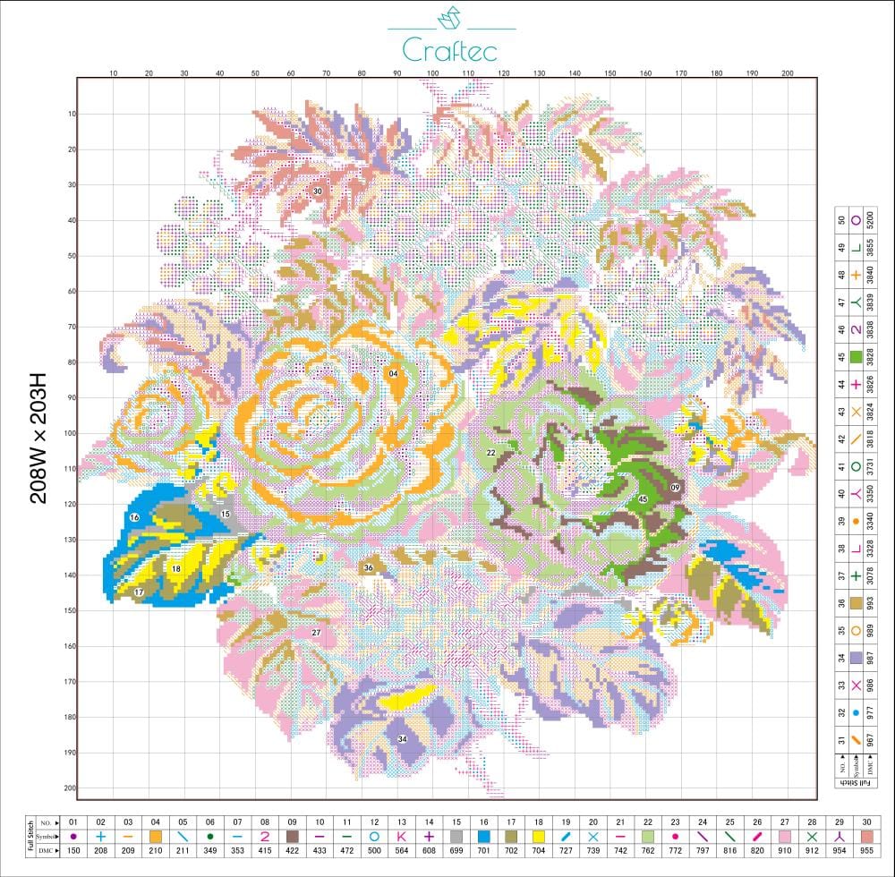 - Kolorowy schemat wzoru – łatwy do odczytania, zgodny z oznaczeniami na tkaninie