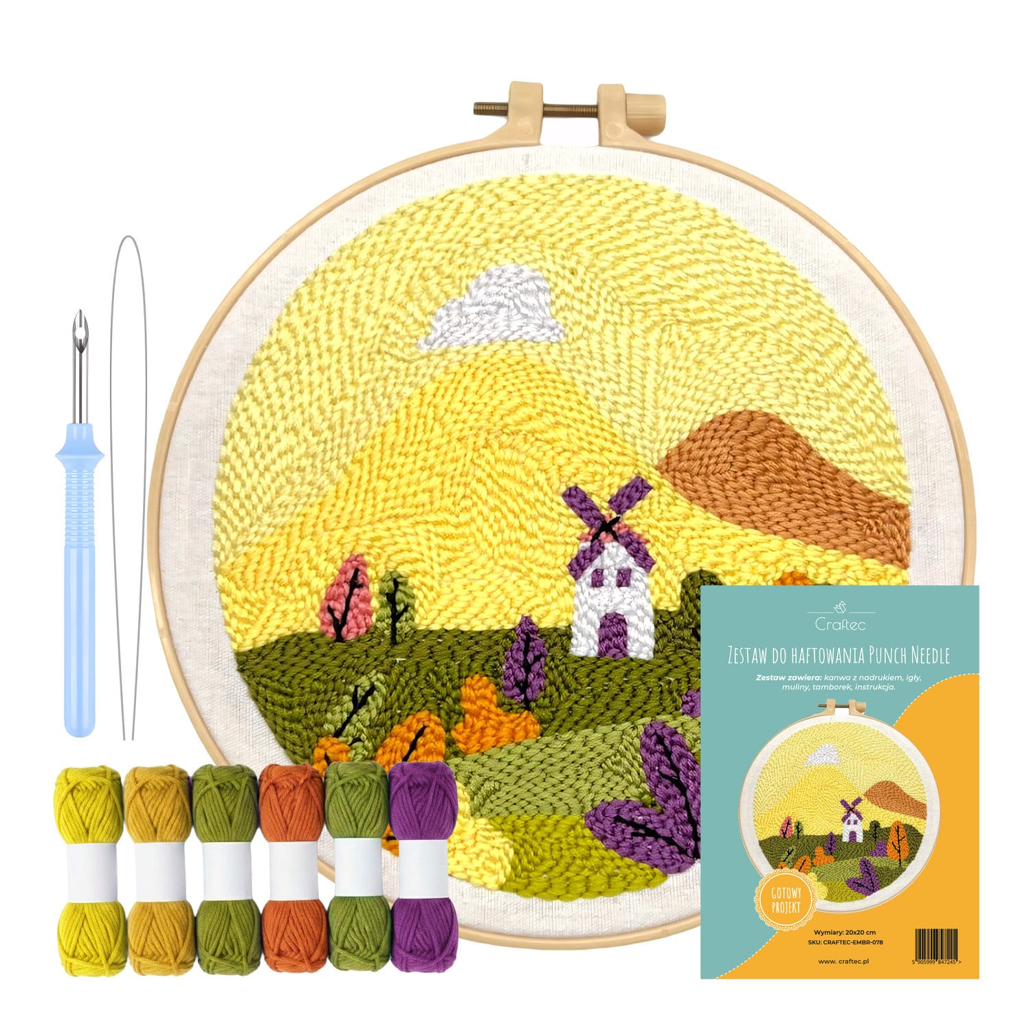Zestaw do haftu typu punch needle to kompletny pakiet startowy dla osób rozpoczynających przygodę z haftem pętelkowym. Zawiera wszystkie niezbędne akcesoria, w tym tkaninę z nadrukowanym wzorem, tamborek, igłę punch needle oraz kolorowe włóczki. Prosta technika i czytelna instrukcja sprawiają, że tworzenie dekoracyjnego haftu jest łatwe i przyjemne, nawet bez wcześniejszego doświadczenia.