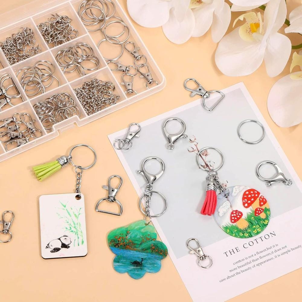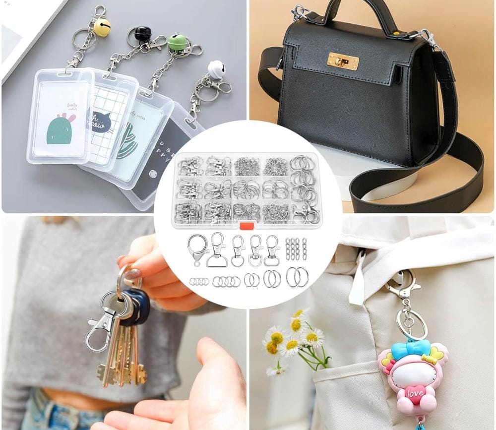 Zestaw do tworzenia breloków składający się z aż 300 elementów, idealny do projektów DIY takich jak breloki, smycze, torebki czy dekoracje. Wykonany z solidnego, odpornego na rdzę metalu, zapewnia trwałość i wygodę pracy.