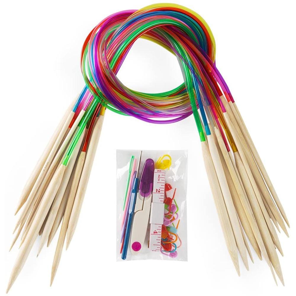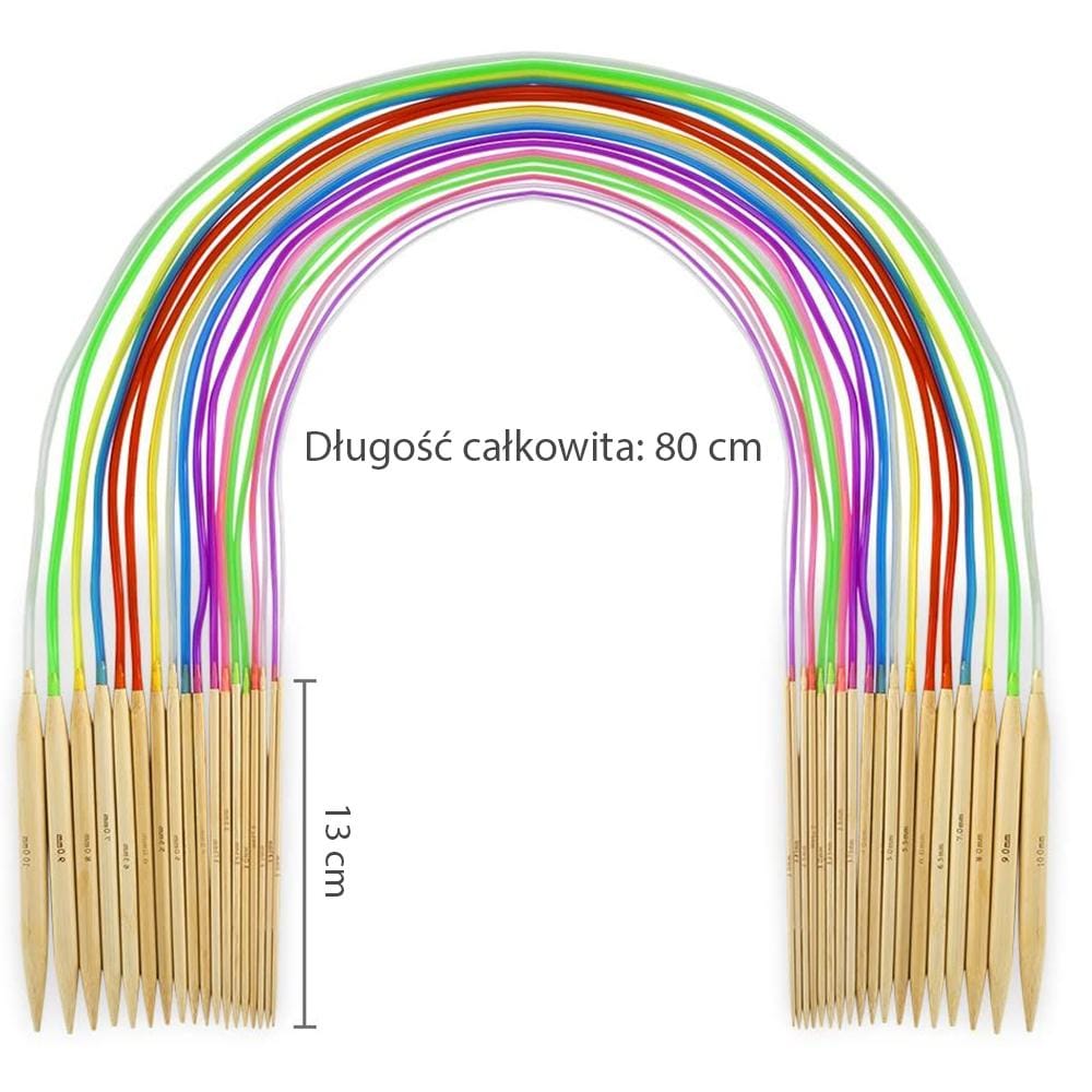 Bambusowe druty na żyłce 18 szt. z akcesoriami
