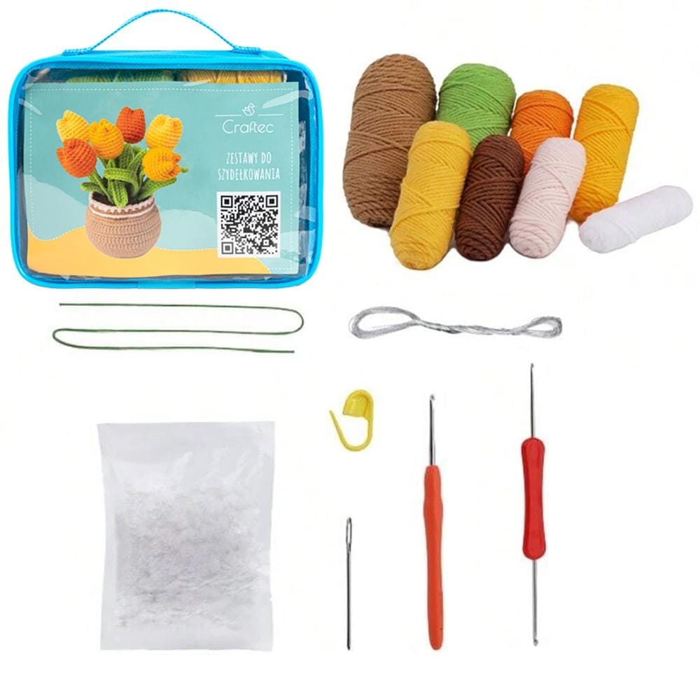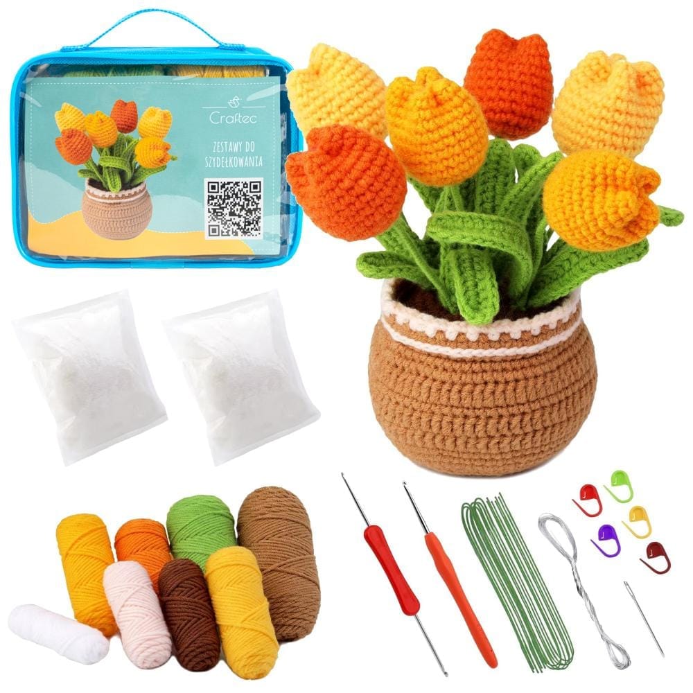 Odkryj świat szydełkowania dzięki naszemu gotowemu zestawowi! Stwórz uroczy bukiet tulipanów korzystając z włóczki, szydełka i instrukcji video. Zestaw zapewnia wszystkie niezbędne materiały i narzędzia, aby wykonać prezentowany projekt. Jest to świetny pomysł na prezent, który zachwyci każdego miłośnika rękodzieła.