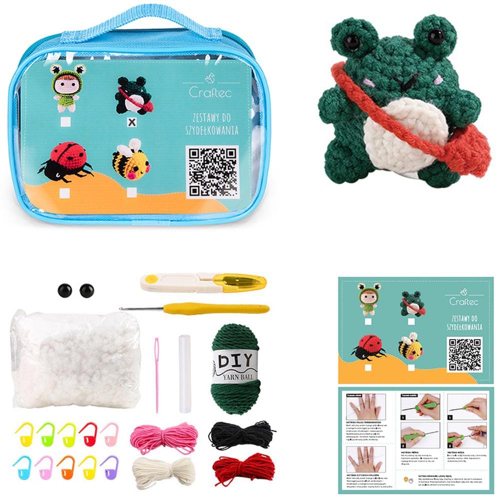 • W zestawie znajdują się wszystkie potrzebne materiały i narzędzia do wykonania żaby ze zdjęcia.