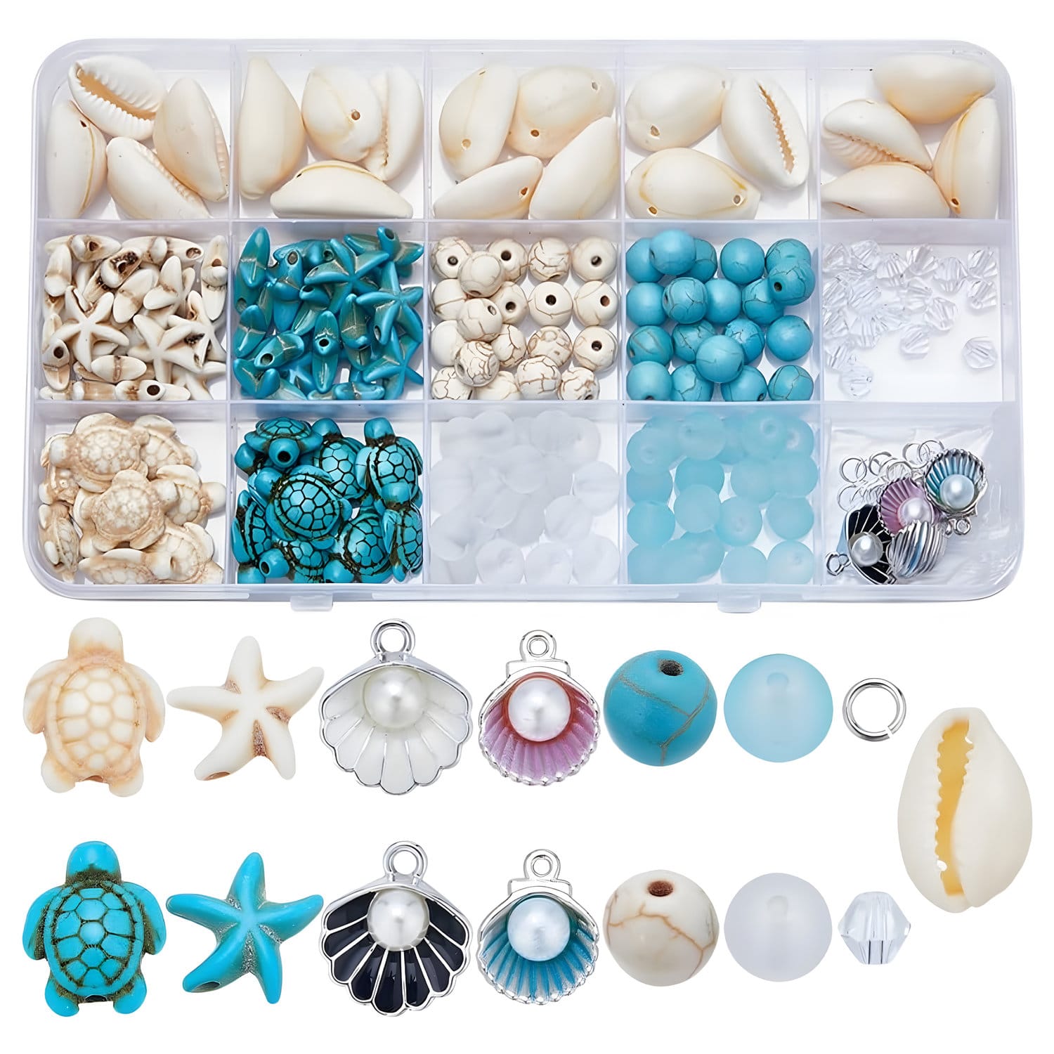 Kompletny zestaw 259 elementów: Zawiera koraliki, zawieszki, muszelki, kółeczka montażowe oraz elastyczną żyłkę. Wszystko w jednym praktycznym pudełku, idealnym do przechowywania i organizacji.