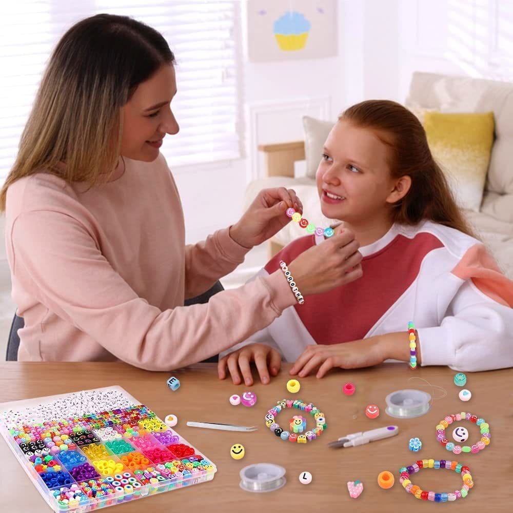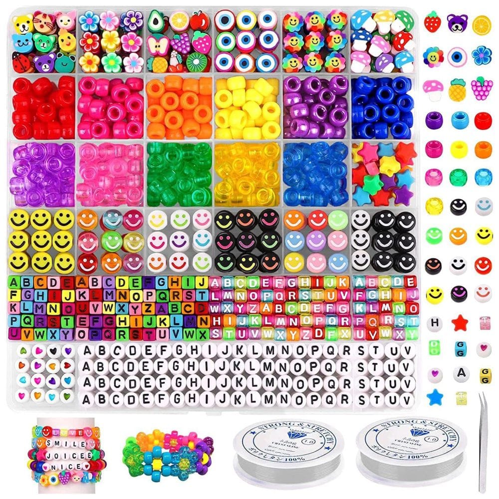 Zestaw do tworzenia bransoletek zawiera aż 930 koralików w różnych kształtach i kolorach. W komplecie znajdują się koraliki literowe, koraliki z uśmiechniętymi buźkami, gwiazdki, serca oraz koraliki akrylowe i gliniane, a także dwa rolki elastycznej żyłki, dzięki czemu możesz rozpocząć zabawę od razu po otwarciu opakowania.