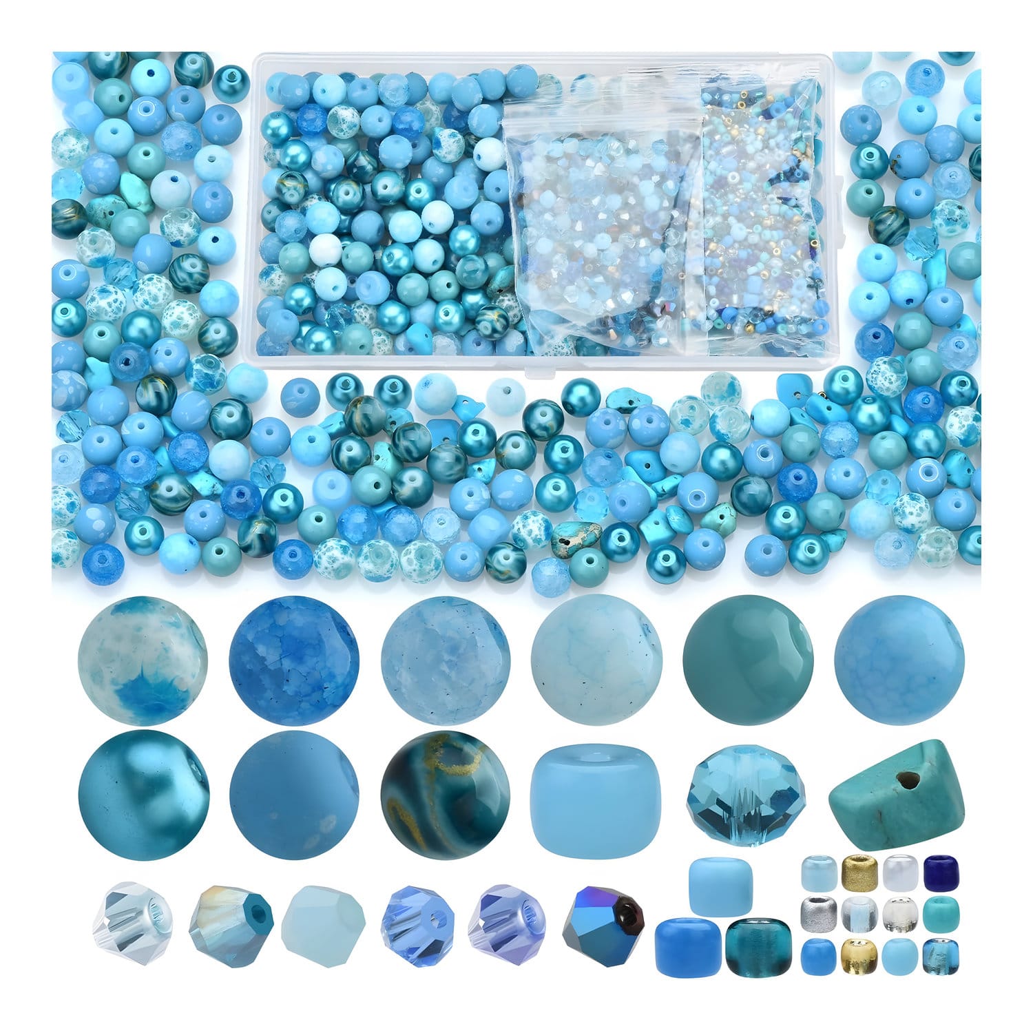 Kompletny zestaw koralików idealny do tworzenia bransoletek, naszyjników, kolczyków, zawieszek czy ozdób. W pudełku znajduje się aż 900 elementów o różnych kształtach i rozmiarach, dzięki czemu można swobodnie łączyć je w unikalne projekty. Koraliki wykonane są ze szkła, kryształu i kamieni ozdobnych – są gładkie, dobrze wypolerowane i trwałe.