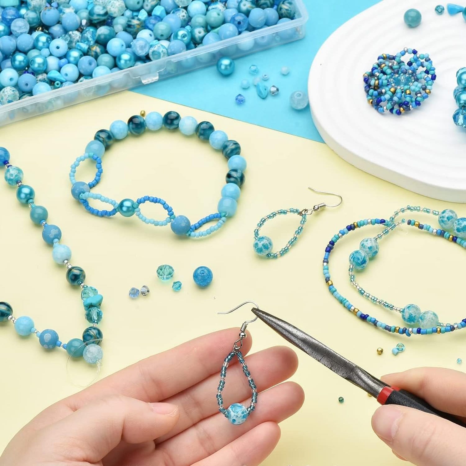 Pełny zestaw do tworzenia biżuterii: Aż 900 elementów o różnych kształtach i rozmiarach – idealne do bransoletek, kolczyków, naszyjników i innych ozdób. Zestaw pozwala łączyć różne style i tworzyć wyjątkowe projekty.