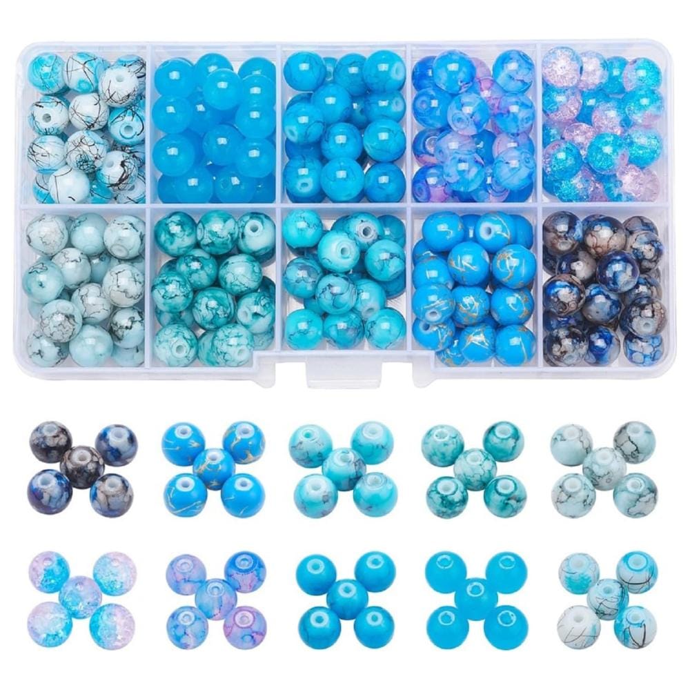 Zestaw 200 sztuk szklanych koralików o średnicy 8 mm. W zestawie znajduje się 10 różnych odcieni po 20 sztuk każdego. Każdy koralik wykonany jest z wysokiej jakości szkła typu Crackle (efekt spękania), które pięknie odbija światło i nadaje unikalny wygląd każdej pracy rękodzielniczej.